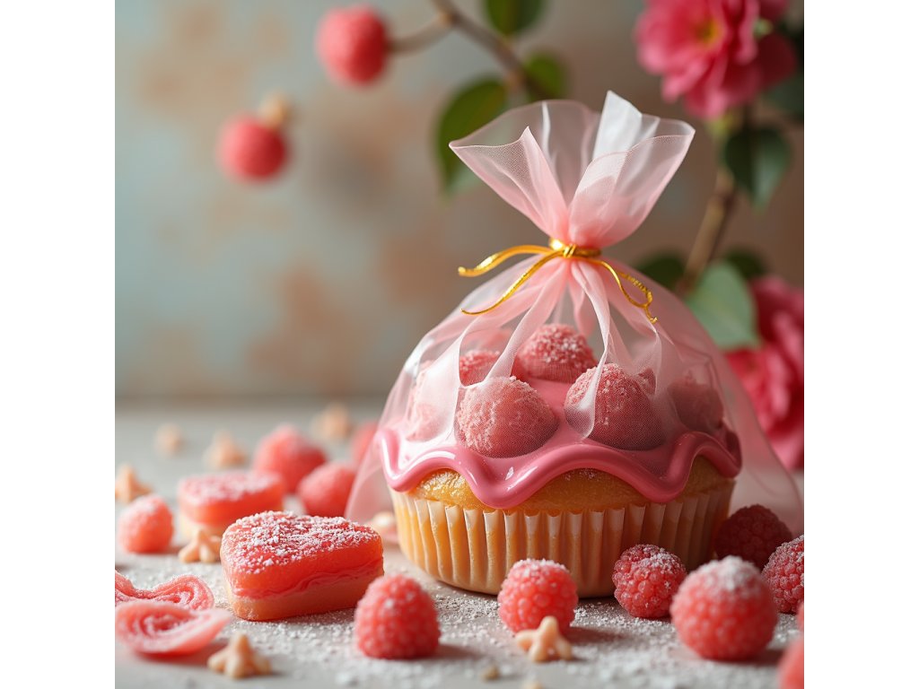 Objevte dokonalou kombinaci jemného vanilkového těsta a malinového krému! Tento prémiový cupcake je navržen jako potěšení pro oko i chuťové buňky. Povrch zdobí růžová malinová poleva a ručně vyráběné malinové pralinky, které přinášejí svěží ovocnou chuť. Celý cupcake je zabalen do elegantního dárkového sáčku s ozdobnou stuhou, takže je připraven potěšit hned při předání.