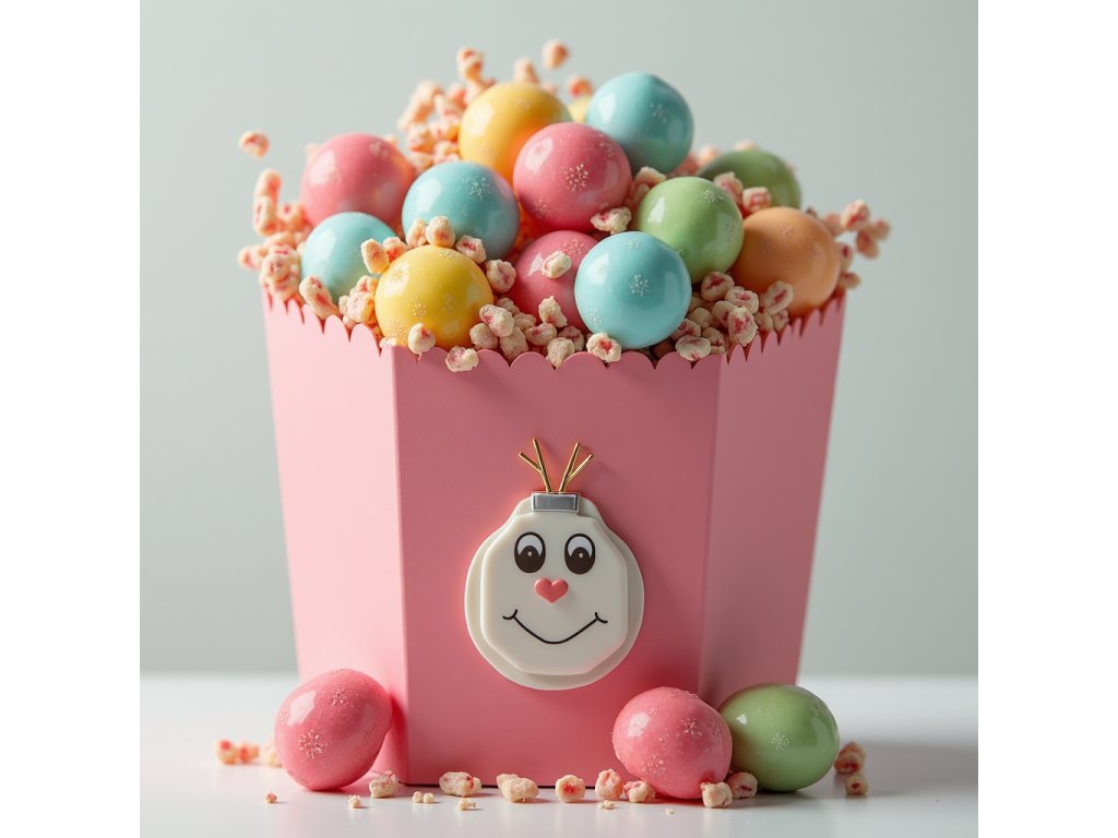 Hledáte originální sladkost na dětskou oslavu, párty nebo jen tak pro radost? Veselá popcornová krabička je plná křupavých a barevných kuliček, které zaručeně vykouzlí úsměv na tváři každému. Každá kulička má jemnou sladkou chuť a krásný pastelový vzhled, který láká nejen děti, ale i hravé dospělé. Růžová krabička s veselým obličejem slouží nejen jako balení, ale i jako krásná dekorace na slavnostním stole. Ideální dárek pro každou příležitost – narozeniny, svátek, nebo jen tak pro radost!